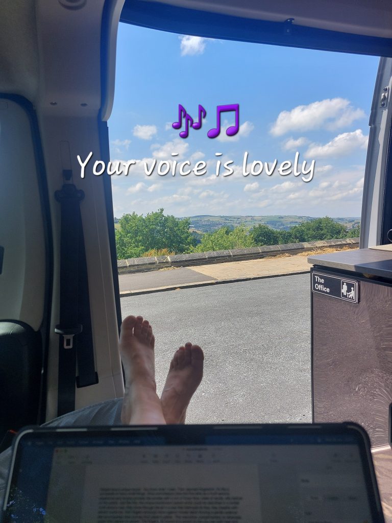 It’s so warm today. I’m working from the van with the doors wide open, the windows wide-open, the sky-light wide-open. I’m basically wide-open to the possibility of a breeze, or even a whisper of a breeze at this point. In the meantime I’m a hair-up sticky mess of a human, eaves-dropping on conversations along the promenade. There’s cool coffee van parked up near me that’s hugely popular. I can’t see it, but I’m having fun listening and imagining the faces-behind-the-voices I can hear. Instead of working.